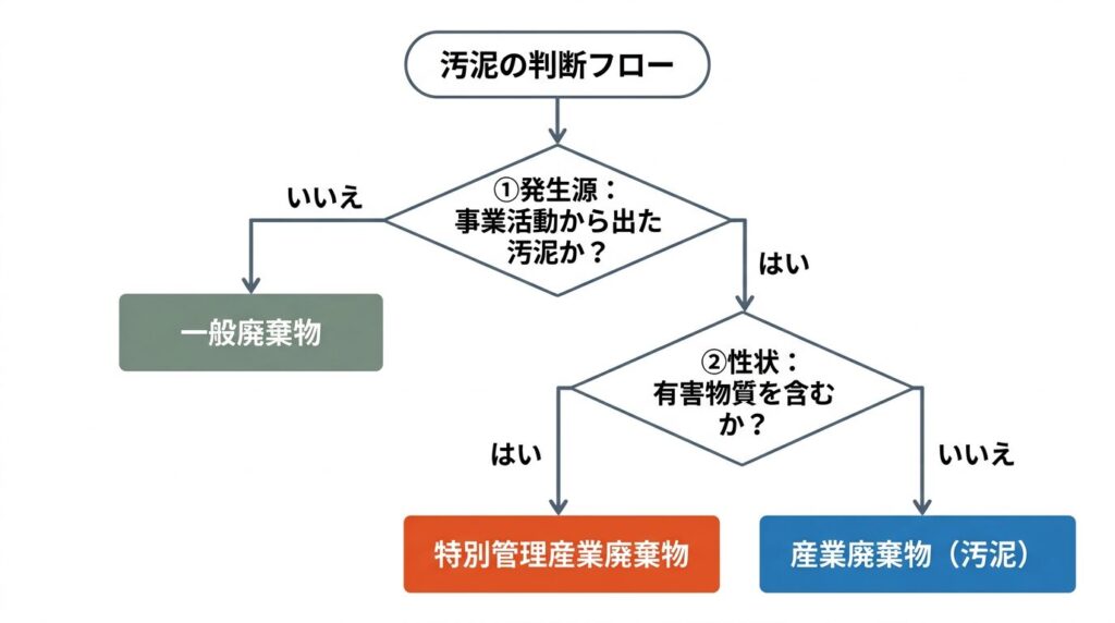汚泥が 産業廃棄物か、一般廃棄物か、あるいは特別管理産業廃棄物か は、名称や見た目だけでは判断できません。